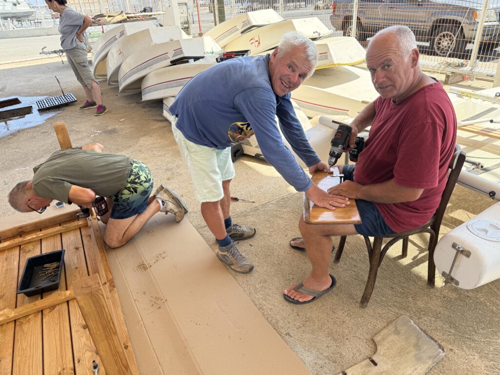 Notre ami Luc Poirot, responsable de l’école de voile, a lancé un appel à l’aide pour la préparation des bateaux et du local, à laquelle ont répondu son épouse Marine,