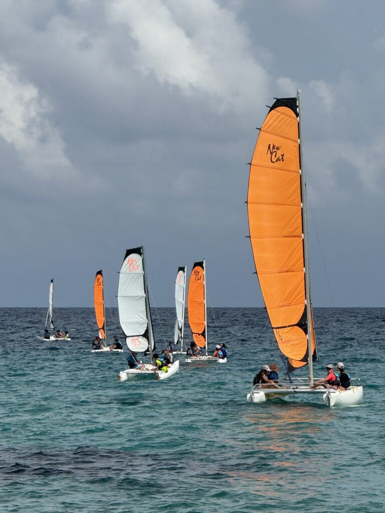 Immense succès dès cette première année: tous les cours d’une semaine étaient saturés, et nous avons hélas dû refuser des enfants, malgré 10 optimists, 6 Edel Cat, et 6 Hobbycat 16 plus 12 planches à voile.