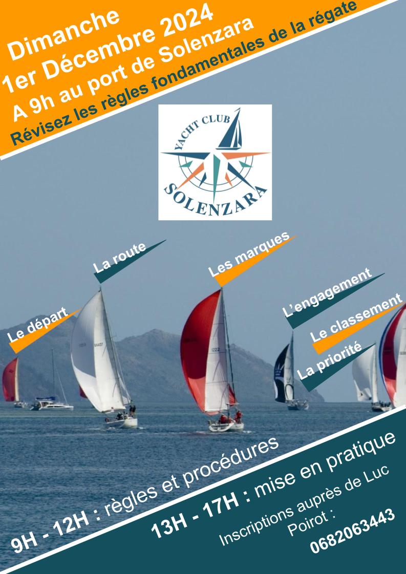 Luc Poirot, entre autres moniteur de voile et fin régatier, se propose de nous transmettre son savoir et son expérience le dimanche 1 er décembre 2024 à Solenzara: De 9h à 12h à l'annexe: Formation théorique De 14h à 16 h devant le port: Mise en pratique sur l'eau Inscriptions auprès de Luc 06 82